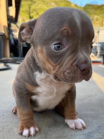 Pearly Pop! This darling girl is so special!!!! She may be differently abled but she has a huge heart and a gentle soul. She walks a little wonky and of course has hydrocephalus, but she has so much love to give. She is a micro exotic bully and she loves to give kisses and get attention. Our amazing Foster Mama Julie will be caring for h