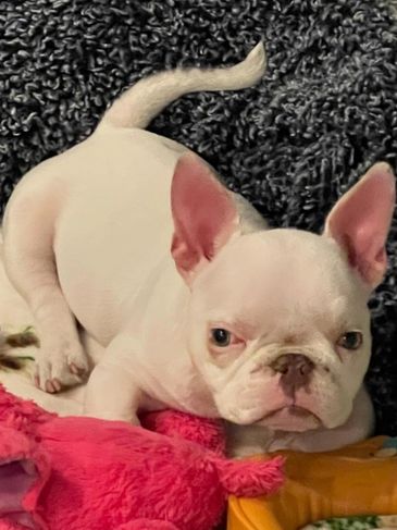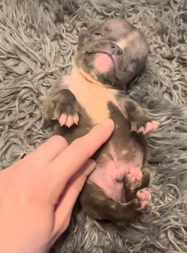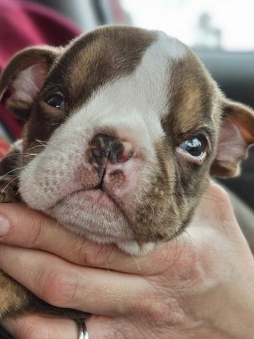 Pearly Pop! This darling girl is so special!!!! She may be differently abled but she has a huge heart and a gentle soul. She walks a little wonky and of course has hydrocephalus, but she has so much love to give. She is a micro exotic bully and she loves to give kisses and get attention. Our amazing Foster Mama Julie will be caring for her as a forever foster and we couldn't be more thrilled and grateful!